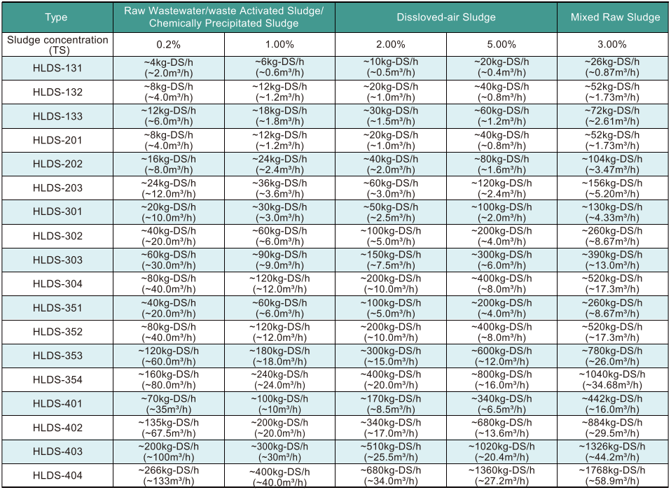 All screw press models are selected based on this parameter. Once you know your required kgDS/h, the right model can be determined quickly.